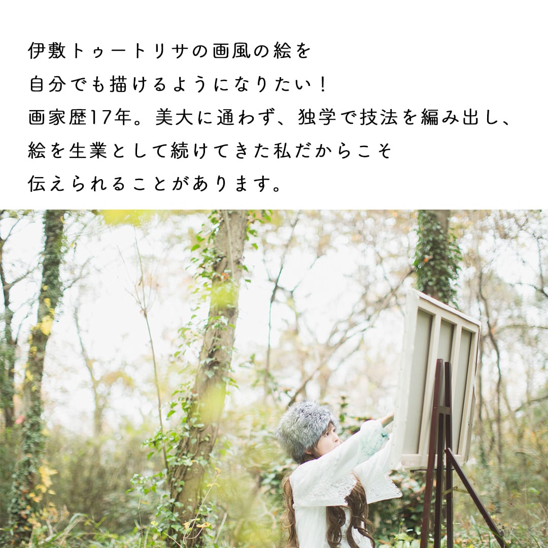画家歴17年。美大に通わず、独学で技法を編み出し、絵を生業として続けてきた私だからこそ伝えられることがあります。