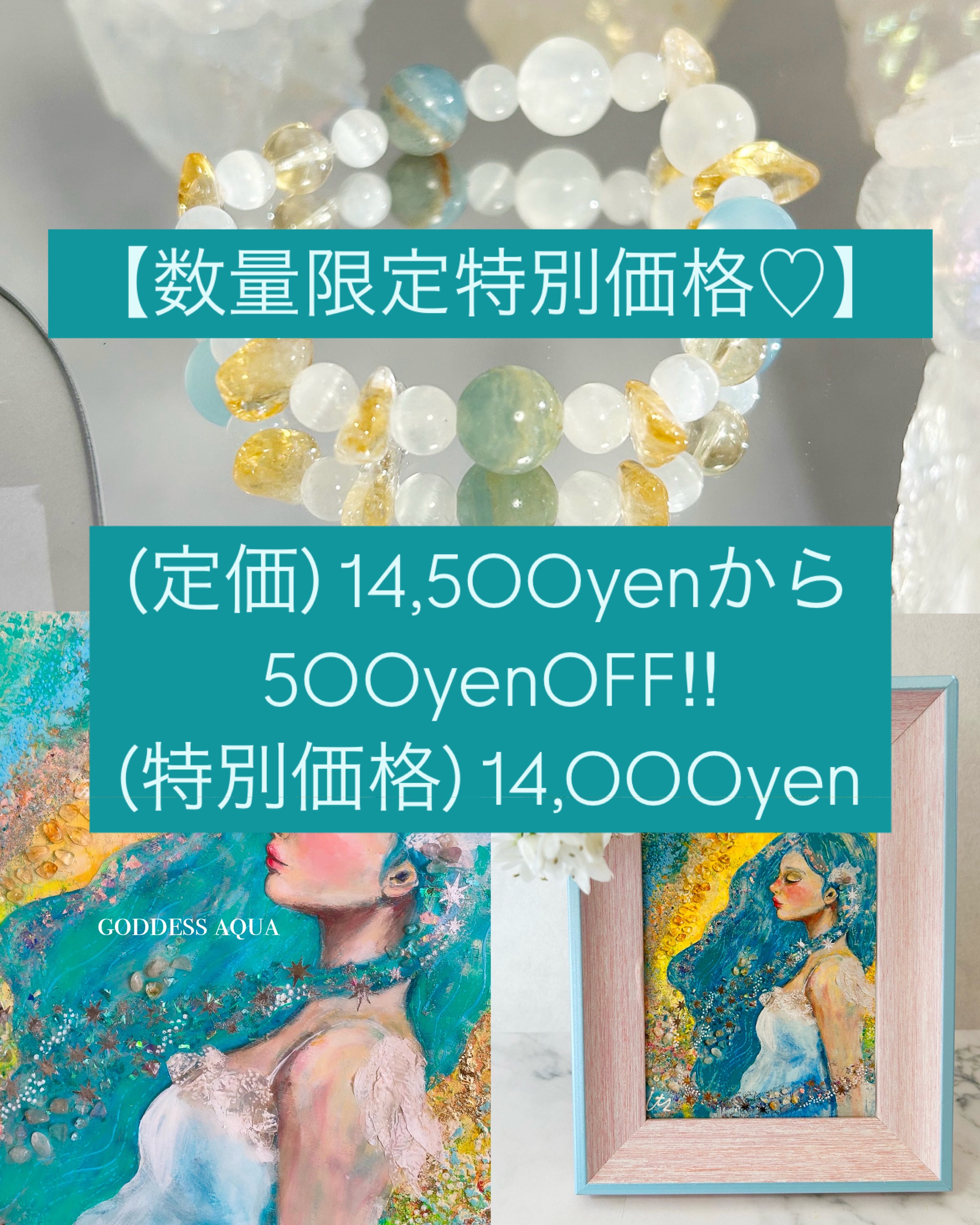 女神アクアは、水と調和のエネルギーを司る存在。彼女の祝福を受けたこのアイテムは、水星の「コミュニケーション」と木星の「幸運」を宿し、本来の魅力を開花させるお守りとなります。心をクリアにし、前向きなエネルギーを循環させることで、あなたの輝きを最大限に引き出します。
